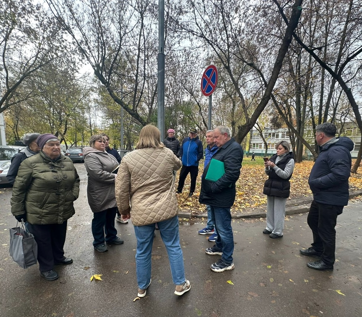 Обход начался от дома по адресу: Дорожная ул., д. 14, корп. 1, по пути осмотрели санитарное состояние дворовой территории, пообщались с жителями и обсудили волнующие вопросы.
